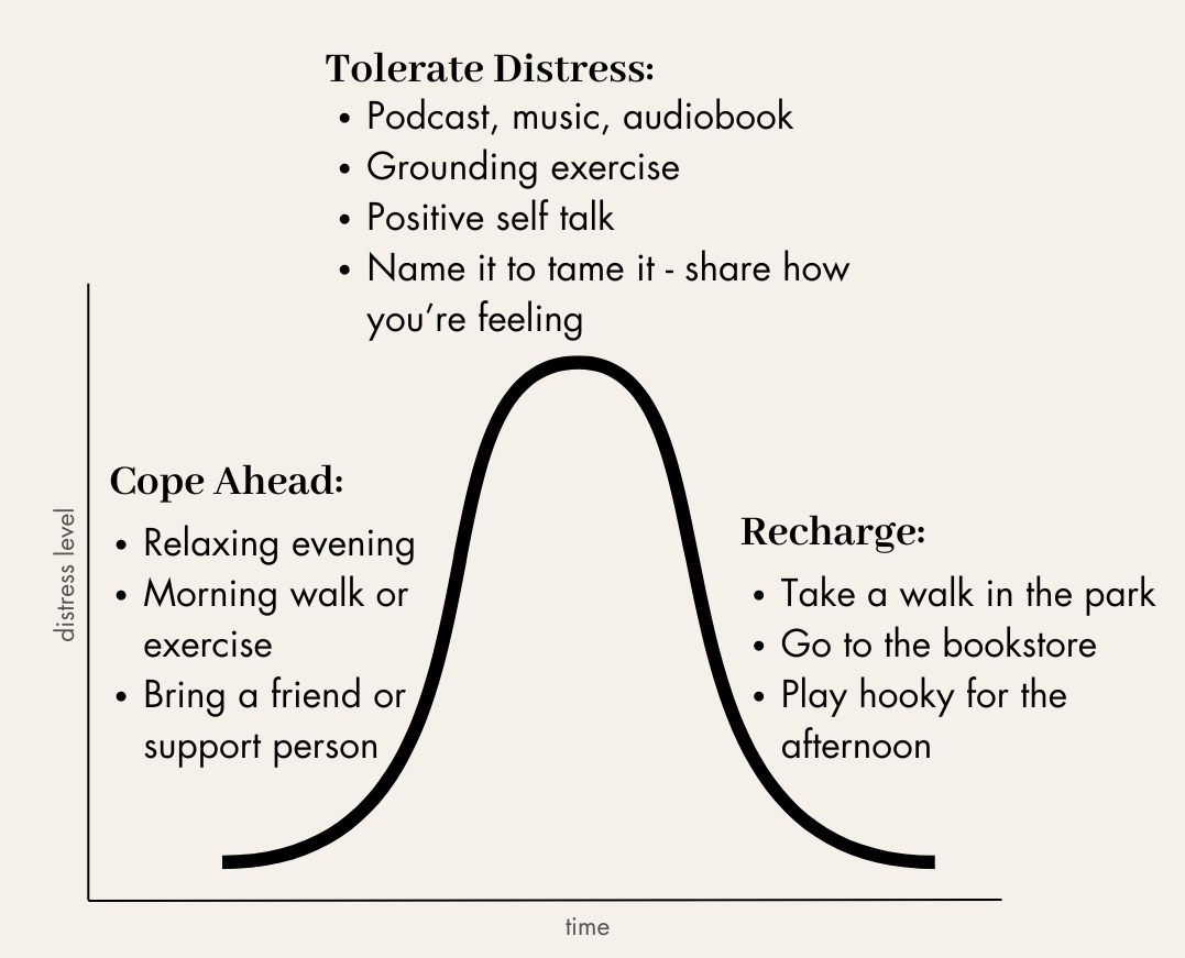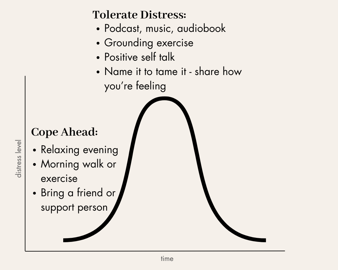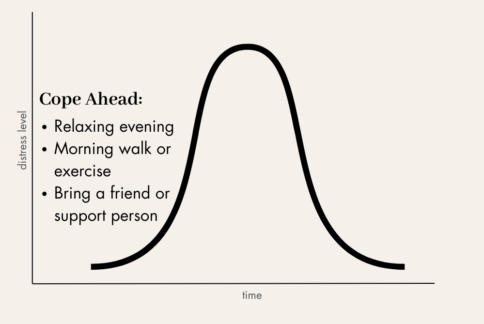 But coping ahead, developing strategies to tolerate the distress and a plan to recharge later can provide as a structure to help you cope a little bit better.